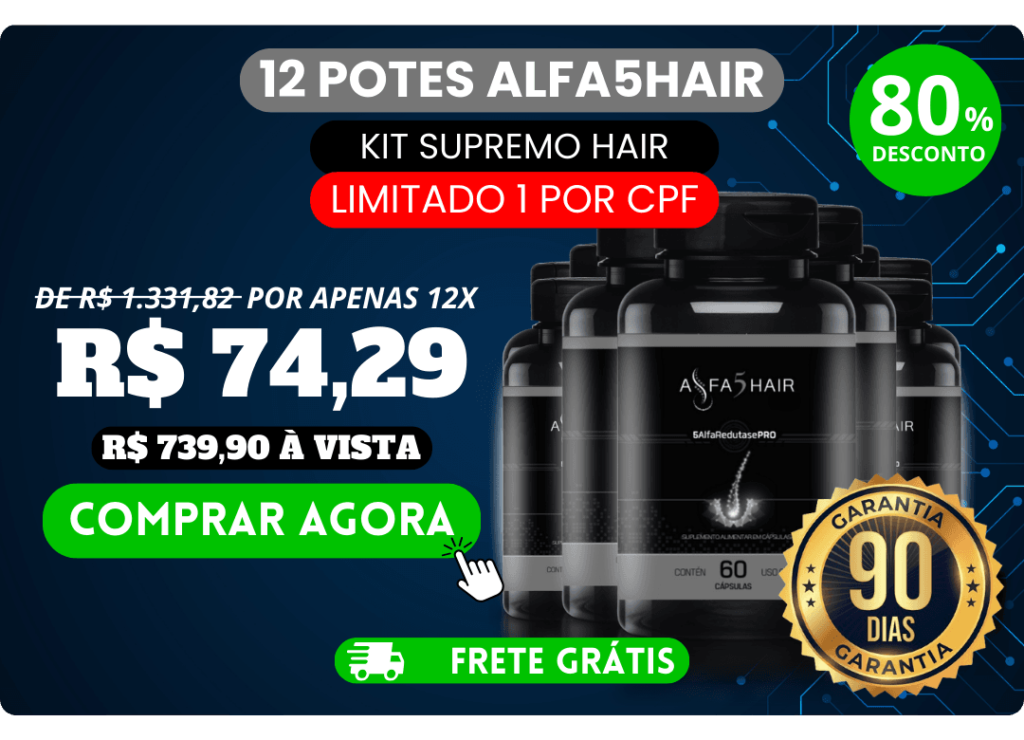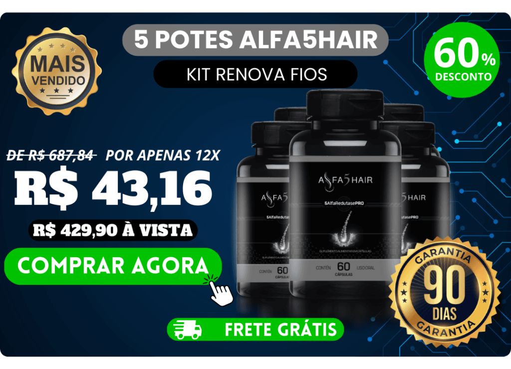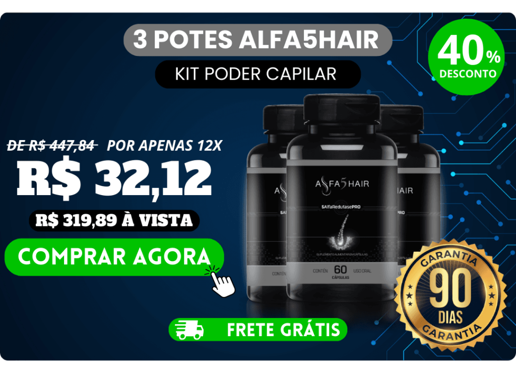 Diante do enorme sucesso e da alta demanda pelo tratamento capilar que está revolucionando o mercado, nós da SAÚDE BRASIL garantimos uma parceria exclusiva com a ALFA CAPS BRASIL, empresa responsável pelo Alfa5Hair – a inovadora Cápsula Japonesa que bloqueia a enzima 5 Alfa-Redutase e combate a calvície de forma eficaz.