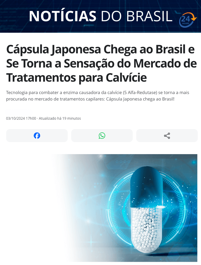 “Cápsula que bloqueia a enzima 5 alfa-redutase promete revolucionar o combate à calvície, oferecendo resultados impressionantes sem a necessidade de cirurgias ou procedimentos invasivos,” afirma Ryoichi Matsuda, responsável pela pesquisa.