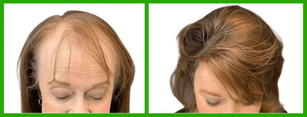 Após cerca de quatro meses testando a fórmula, a calvície que tanto me incomodava começou a diminuir visivelmente. O resultado foi inacreditável, e eu conseguia ver a mudança dia após dia. As áreas ralas que me deixavam insegura começaram a voltar a crescer. Cheguei a pensar em usar outros produtos comuns para acelerar ainda mais o processo, mas os médicos me alertaram para não alterar o que já estava fazendo, pois isso poderia interferir nos resultados do teste” – relata Mariana, mostrando sua foto de antes e depois.